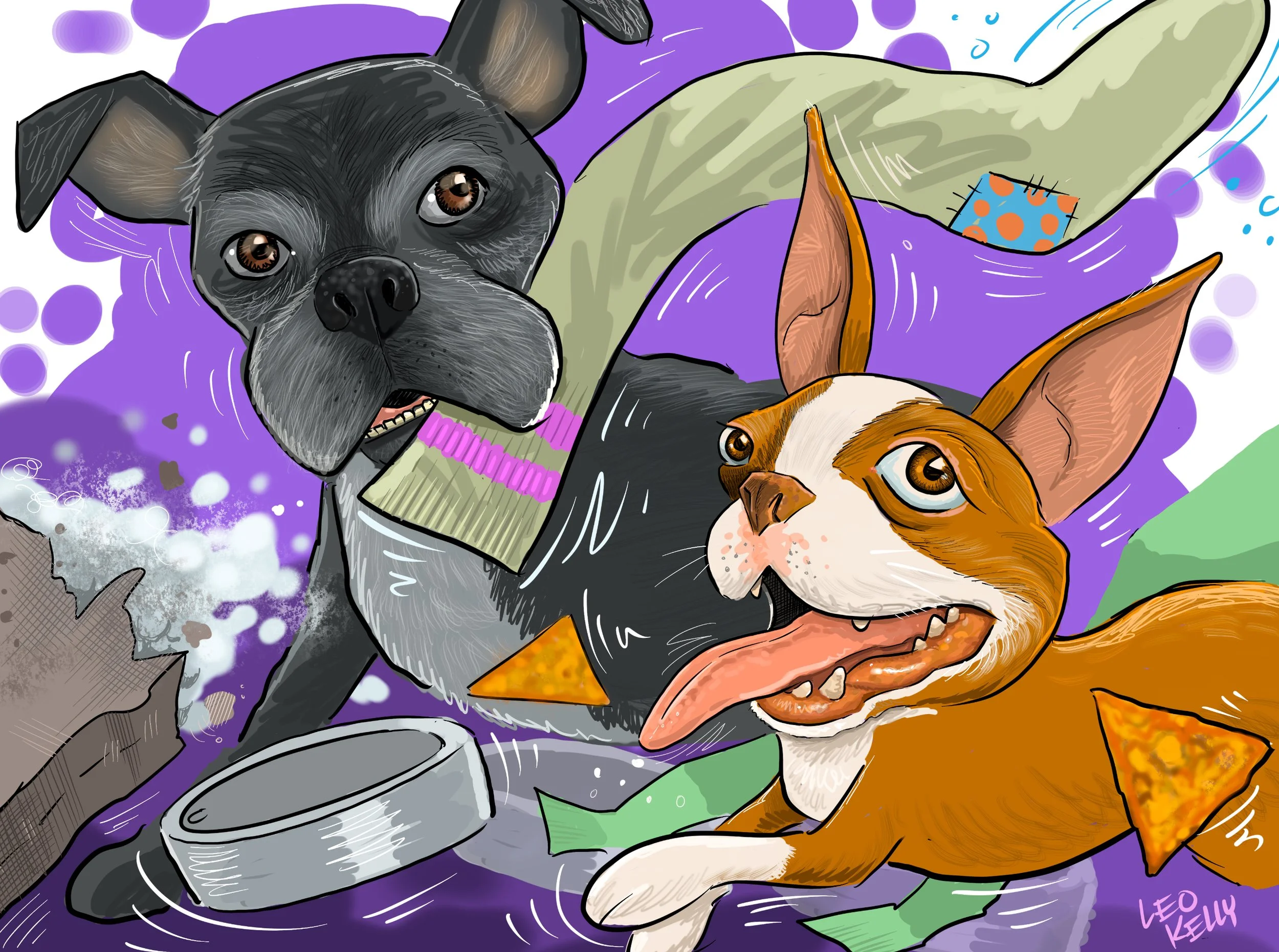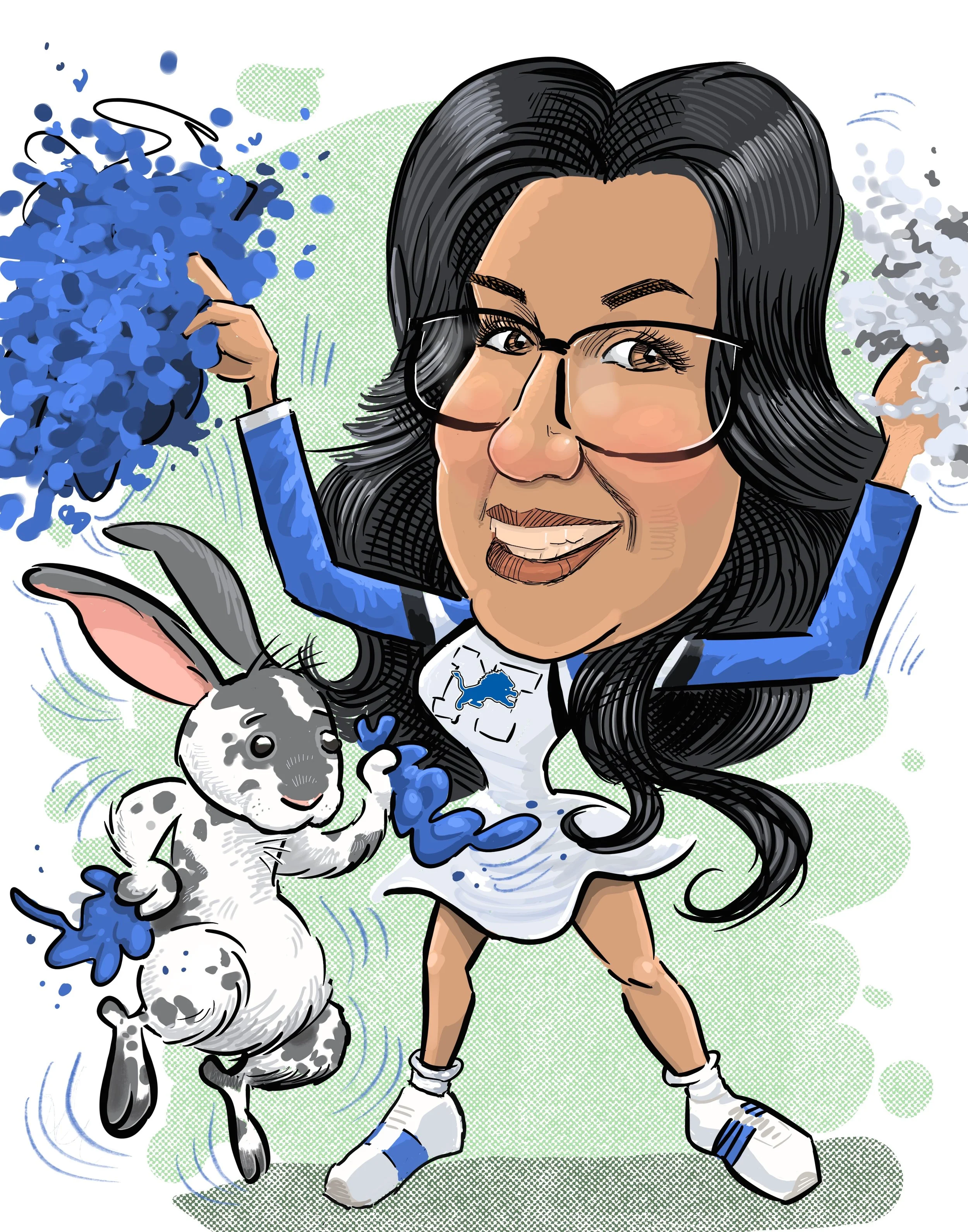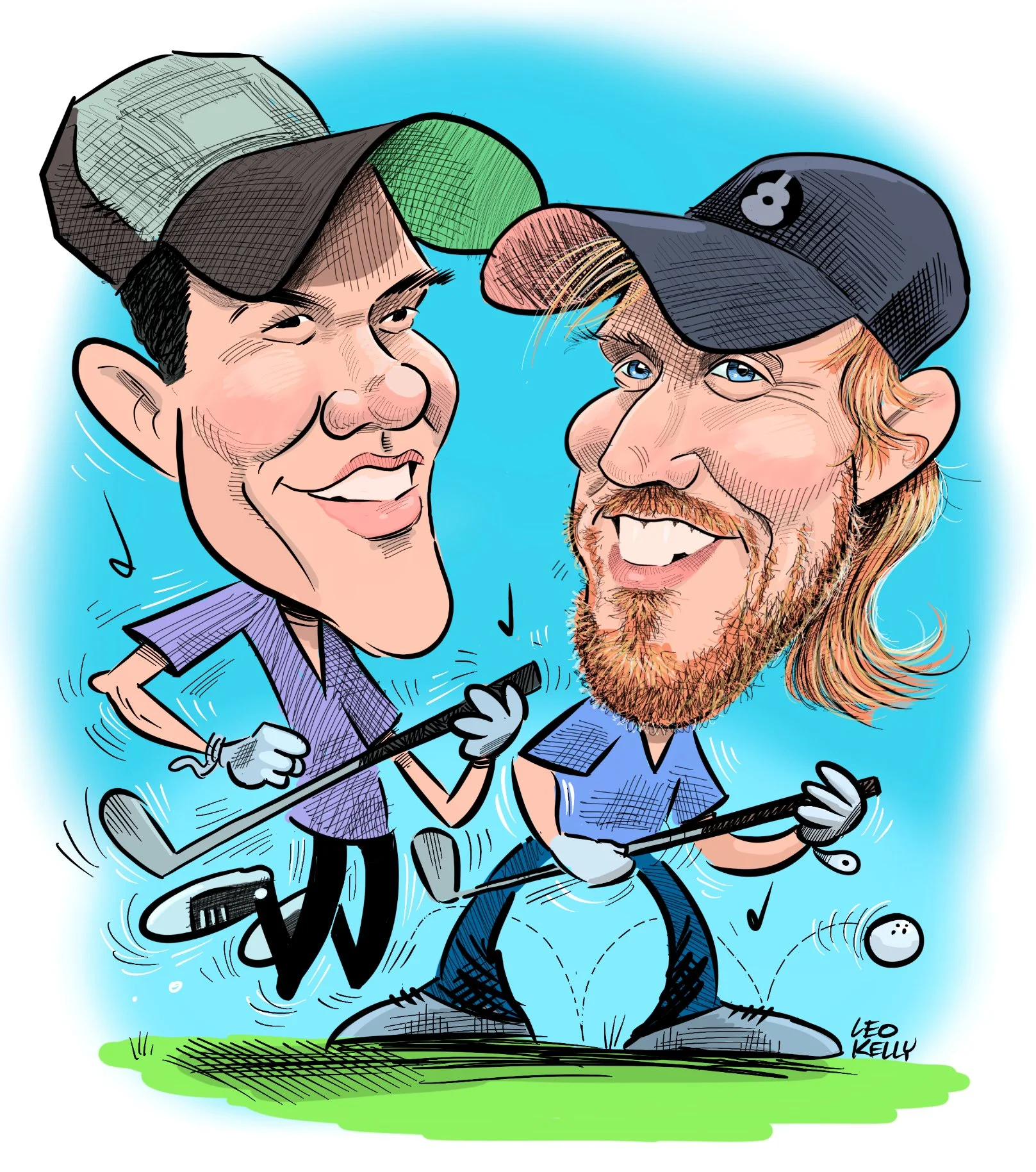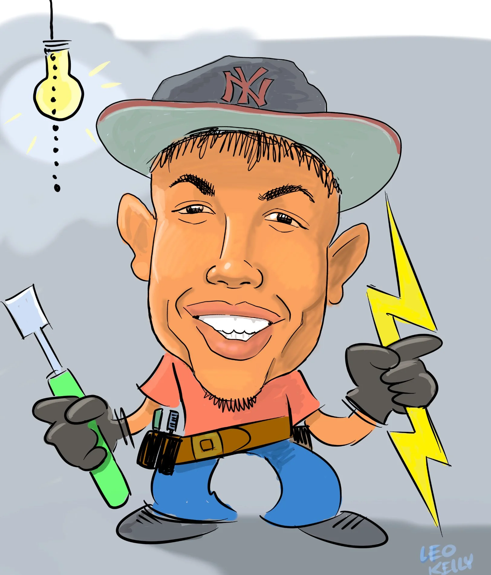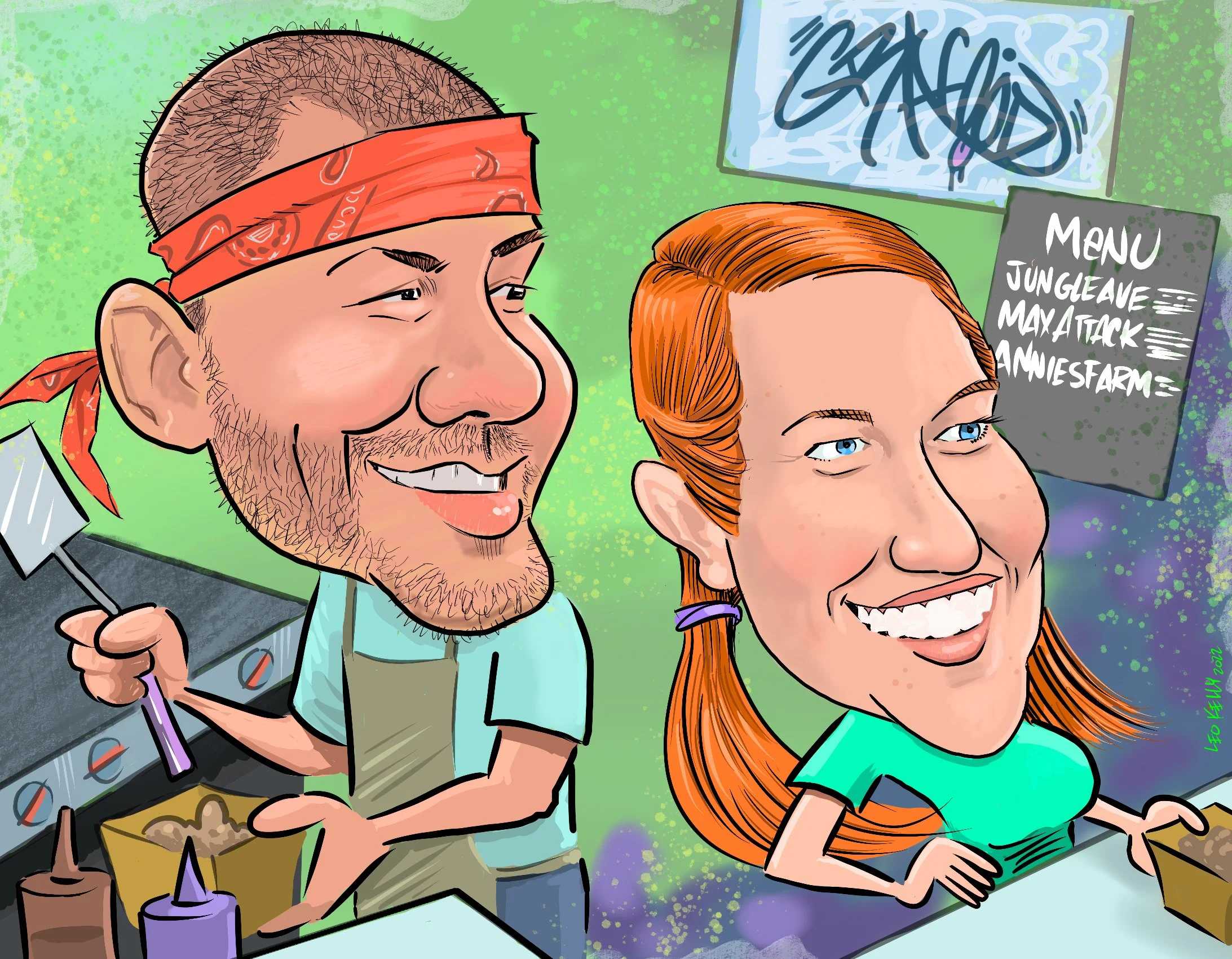 Leo Kelly draws families, teams, work groups,dogs, cats….caricatures make a great